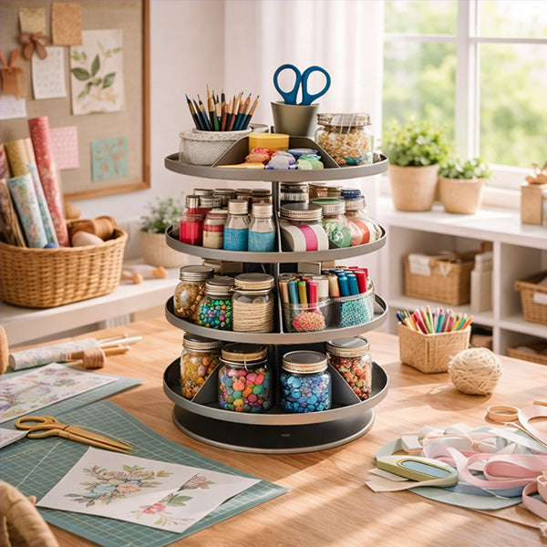 Dark Grey 4-Tier Rotating Storage Tower - Metal Spinning Organizer